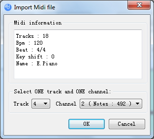 DigiBand will automatically identify the Tracks, Bpm, Beat, Key Shift and Name of the imported file. Choose the track and channel for the melody.
