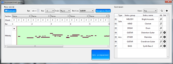 Click 'Accompany your humming' button to open accompaniment guide window.
