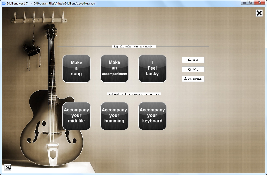 An intelligent music software application for Windows. It can automatically generate music compositions by one click. It can also improvise accompaniments to audio files, solo singing or computer keyboard playing. It enables users to create original music easily in seconds.