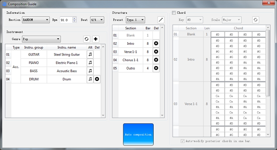 Run AthTek DigiBand V1.7 and click 'Make an accompaniment' button to open composition guide.